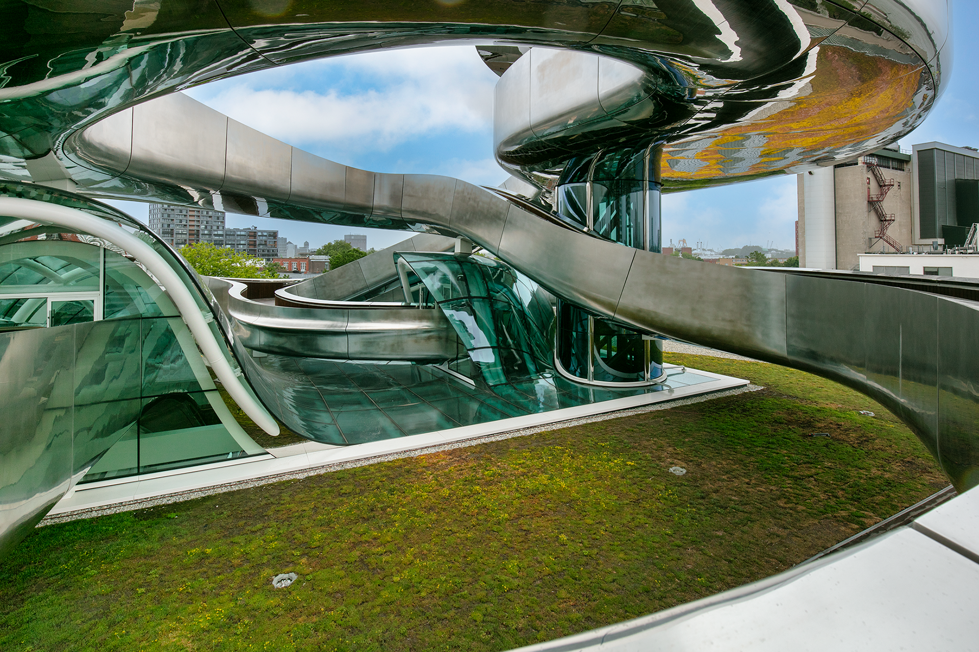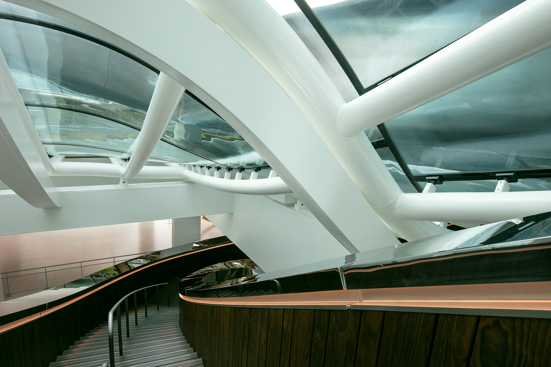 Het werd uiteindelijk een technisch hoogstandje in staal, dat werd toevertrouwd aan CSM Steelstructures in België, die in 2019 begon met de bouw van deze complexe staalconstructie. Hiervoor werd 2.100 meter aan gekromde buizen gebruikt in combinatie met spiegelend roestvrijstaal, houten afwerking en dubbelgekromde glaspanelen. Dit was voor de uitvoerende partij een enorme uitdaging.
